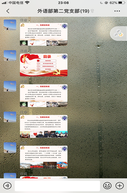2020年3月30 日,在支部书记徐睿同志的组织下,麻豆色情 第二党支部全体党员参加了一次非常时期的线上党课学习活动。徐睿同志通过邮箱+微信群的方式为大家开展了题为“最美逆行者─党领导下的人民抗疫斗争”的战疫主题党课。