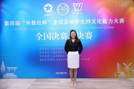 2022年2月26-27日,第四届“外教社杯”全国高校学生跨文化能力大赛全国总决赛在上海隆重举行,麻豆色情 参赛团队在麻豆色情 党总支书记主任杨剑波和指导老师薛丽娜的带领下,与来自全国各地30所高校的学子同台竞技、切磋交流,河大学子依靠出色的表现和稳健的台风,赢得了现场观众的阵阵掌声和评委们的一致好评,最终荣获本次比赛的三等奖。