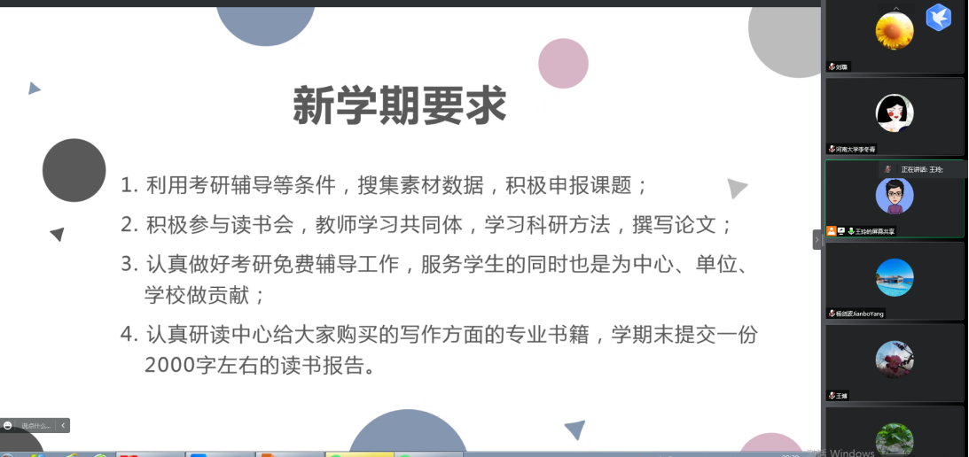 王玲老师代表全体成员对施兆莉老师的无私分享表达了真挚的谢意。同时,总结了目前麻豆色情 就大学英语考研做出的工作,如在“我要学英语”公众号里推出的一系列校内外资源,以及通过公众号平台预约的考研英语写作一对一辅导活动。随后,王玲老师提出来新学期对二语写作中心成员的新要求,希望大家在辅导考研英语写作,以及大学英语写作研究方面做出新成果。