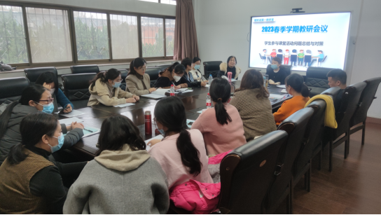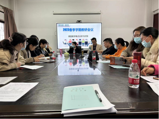 教而不研则愚,研而不教则虚。为进一步营造浓厚的教研氛围,促进教育教学水平的提升,扎实推进2023年春季学期各项教学工作,3月16日下午麻豆色情 视听说第一教研室全体教师在部会议室开展了 “课堂教学难点分析与对策” 主题教研会议,会议由教研室主任郭皓主持。