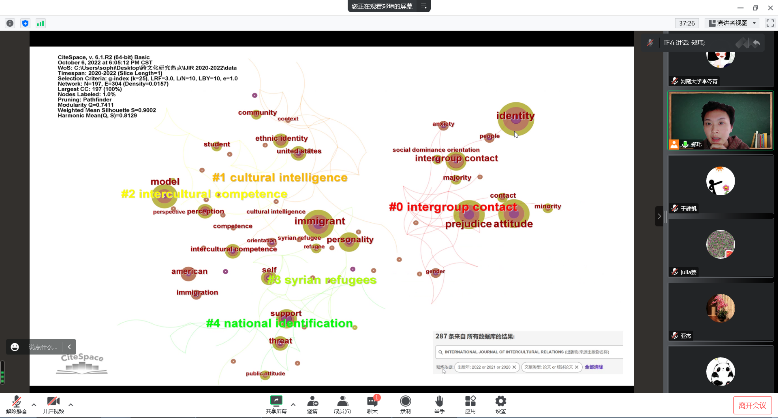 应用语言学研究设计与统计读书会由郑玮老师领读,共读书目包括雷蕾的《应用语言学研究设计与统计》和许宏晨的《第二语言研究中的统计案例分析》。于建凯、郑玮老师从翻译、跨文化研究方向分别追踪了5本中文期刊、5本国际期刊近5年的研究动态,从中发掘与自己研究兴趣相关的热点研究问题并做了分享汇报。