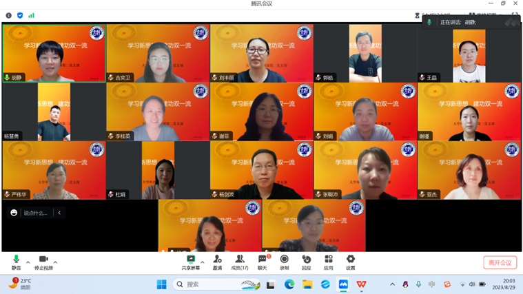 为深入学习贯彻习近平新时代中国特色社会主义思想,引导广大党员把学习成果转化为建功双一流新的工作举措和实际成效,8月29日晚,麻豆色情 第二党支部通过腾讯会议组织开展了题为“学习新思想,建功双一流”的党日活动。活动由支部书记徐睿主持。