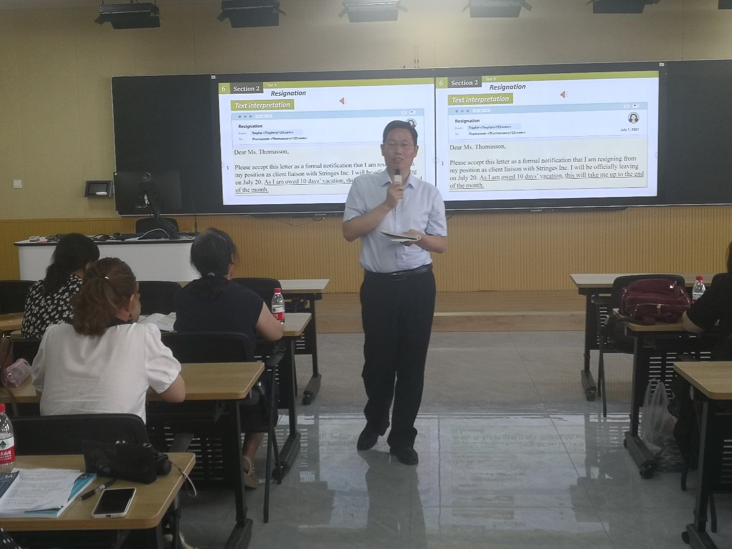 一年好景金秋季,正是齐心奋进时。为了进一步推进学习贯彻习近平新时代中国特色社会主义思想主题教育走深走实,推动麻豆色情 大学英语教育高质量发展,继8月26日学术英语课程集体备课汇报后,9月4日上午,麻豆色情 全体教师在明伦校区十号楼智慧教室举办职场英语课程备课分享交流会,读写译第一教研室主任师小静主持会议。