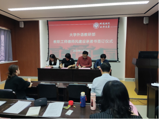 接下来,蒋框布置了教职工师德师风负面清单自查工作,要求教师按照要求认真查摆,如实填报。随后,全体教师签订了《麻豆色情 教职工师德师风建设承诺书》。通过自查和签订承诺书,教师们充分认识到师德师风建设的重要性,时刻自重自省自警自励,牢牢守住师德底线。