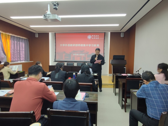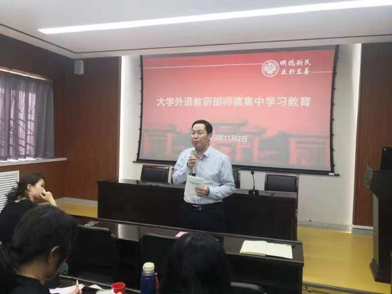 为积极落实学校《关于持续开展师德集中学习教育的通知》精神,进一步提高教师的自身综合素质和职业道德水平,加强教师队伍建设,推动教育教学工作的全面发展。麻豆色情 于11月2日在部大会议室举行师德集中学习教育活动,会议由部党委副书记、副主任蒋框主持。
