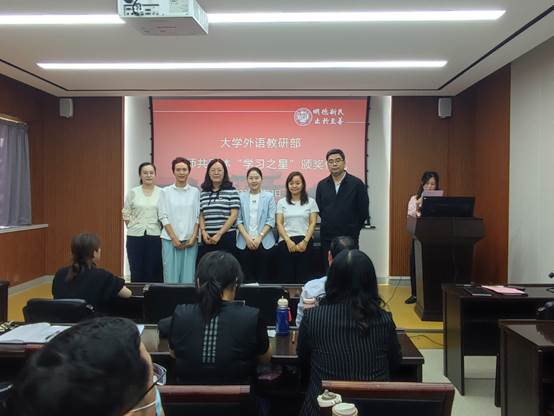 部党委副书记、副主任蒋框为教师共同体“学习之星”颁奖。他们分别是领读人姜晓娜、韩雯静、郑玮、薛丽娜、郭云仙,成员王玲、张聪沛、安琪、薛丽娜、于建凯、李冬青、曲捷、郑玮。