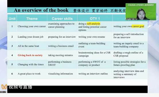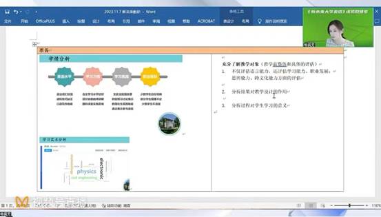 11月7日,外语教学与研究出版社举行“《新未来大学英语》虚拟教研室”第二期线上教研活动,麻豆色情 副教授薛丽娜以“融入职场能力和合作阅读的教学”为题做在线报告,北京外国语大学副校长、新未来系列教材总主编孙有中教授和北京外国语大学副教授杨莉芳对报告进行了点评。