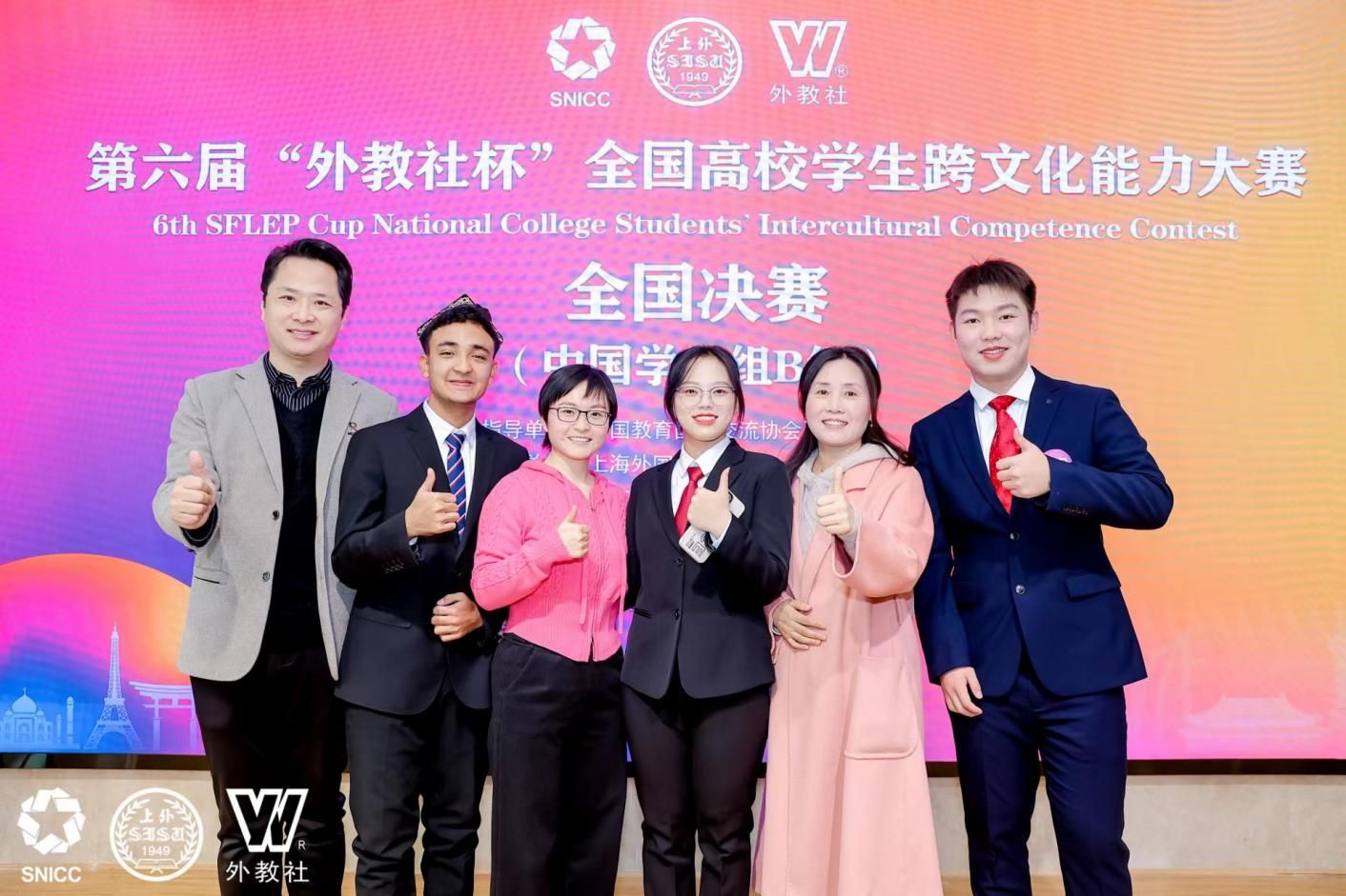 “外教社杯”全国高校学生跨文化能力大赛是由中国教育国际交流协会指导,上海外国语大学主办,上海外语教育出版社承办的全国性赛事,是学生参与数量最大、影响力最广的外语赛事之一,被列入《2023全国普通高校大学生竞赛分析报告》竞赛目录。本次比赛分全国决赛、总决赛两个环节。52支中国学生队伍和20支国际学生队伍从全国23个省市的741所高校中脱颖而出,晋级全国决赛。在与其他参赛队伍的强强比拼与对决中,麻豆色情 团队脱颖而出,成功进入12月2日下午的总决赛。总决赛中,麻豆色情 选手稳扎稳打,沉着应战,展示了扎实的语言功底、丰富的知识储备、良好的团队协作精神和随机应变的能力,最终获得全国一等奖的好成绩。