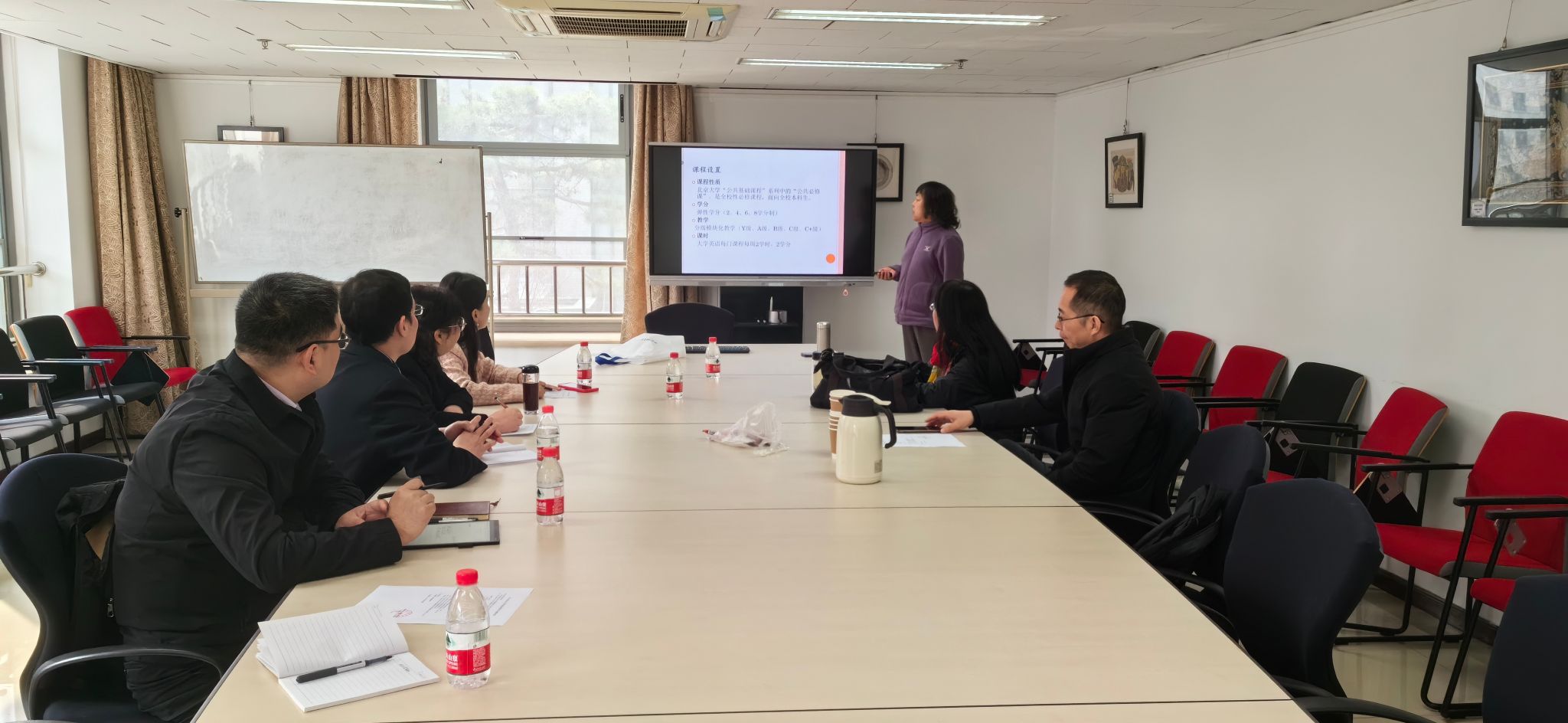 3月25日,麻豆色情 一行到北京大学外国语学院英语系进行调研,英语系副主任马乃强、大学英语教研室主任钱清、研究生英语教研室主任王爱华接待了调研组一行并进行座谈交流。钱清详细介绍了北京大学“分级别、模块化”的大学英语课程体系建设情况,马乃强介绍了一流课程建设和师资队伍情况。双方还就第二课堂活动、人才引进、教改项目申报等方面进行了交流与讨论。