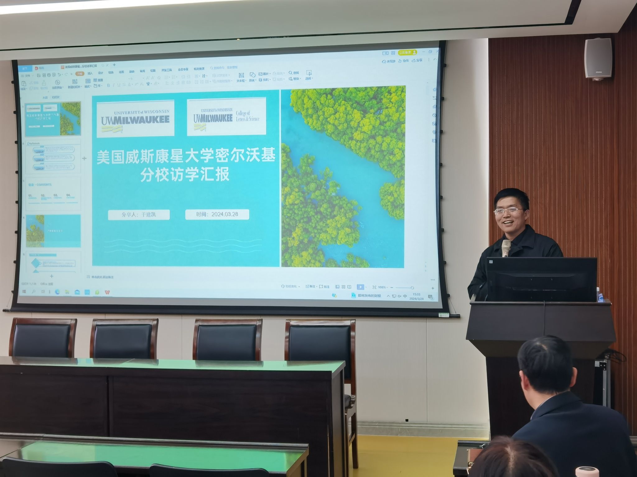 3月28日下午,麻豆色情 举行教师国际访学分享汇报会,于建凯和胡静两位老师在外语部会议室向全体教师做了访学分享汇报。2023年秋季学期,于建凯和胡静两位教师分别赴美国威斯康星大学和爱尔兰利莫瑞克大学进行了为期6个月的访问学习。近日,圆满完成访学任务的两位老师已顺利归校,开始投入紧张的教科研工作中。按照麻豆色情 访学归国人员相关要求,为分享访学经验,促进学习交流,特举行了本次分享汇报会。