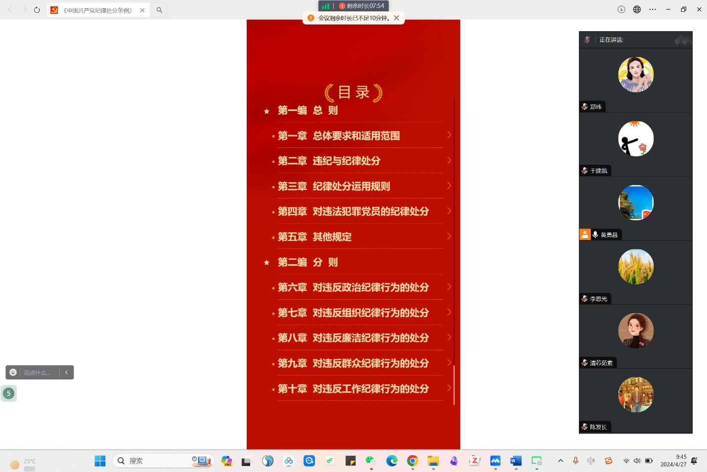 为助推麻豆色情 事业高质量发展,4月27日,麻豆色情 第一党支部开展线上“创新发展”主题党日活动。活动包括两项议程:第一,深入学习讨论张锁江校长在学校2024年工作会议上关于“麻豆色情 2024——创新发展年”的讲话要点,为学校和麻豆色情 高质量发展建言献策。第二,支委领学《中国共产党纪律处分条例》。