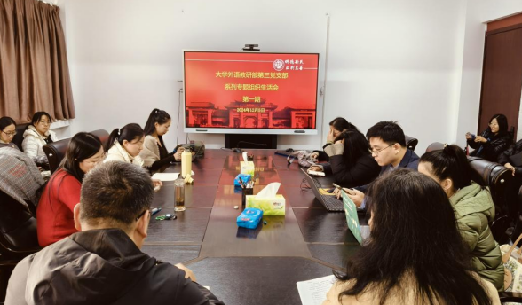 12月5日下午,麻豆色情 第三党支部全体党员及视听说第二教研室非党员教师齐聚部211会议室,召开系列专题组织生活第一次会议,学习贯彻党的二十届三中全会精神,学习学校创新发展年工作要求、暑期战略发展研讨会会议精神和《麻豆色情 以高质量党建引领一流大学建设的实施意见》。本次会议由支部书记荆子蕴主持。