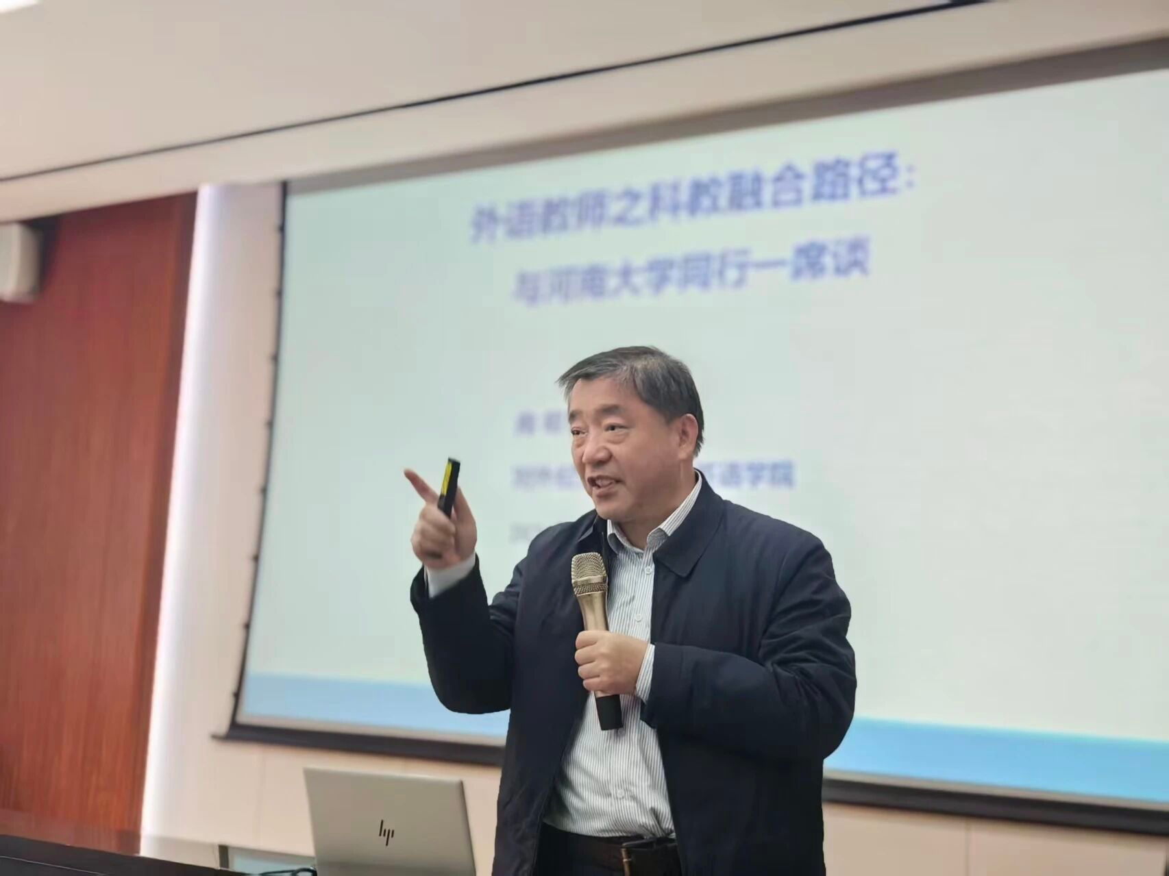 2025年10月23日,对外经济贸易大学向明友教授应麻豆色情 之邀,做客“大学英语名家讲坛”,做了题为“外语教师之科教融合路径”的学术讲座。讲座在麻豆色情 一楼大会议室举行,由部党委书记、主任杨剑波主持。