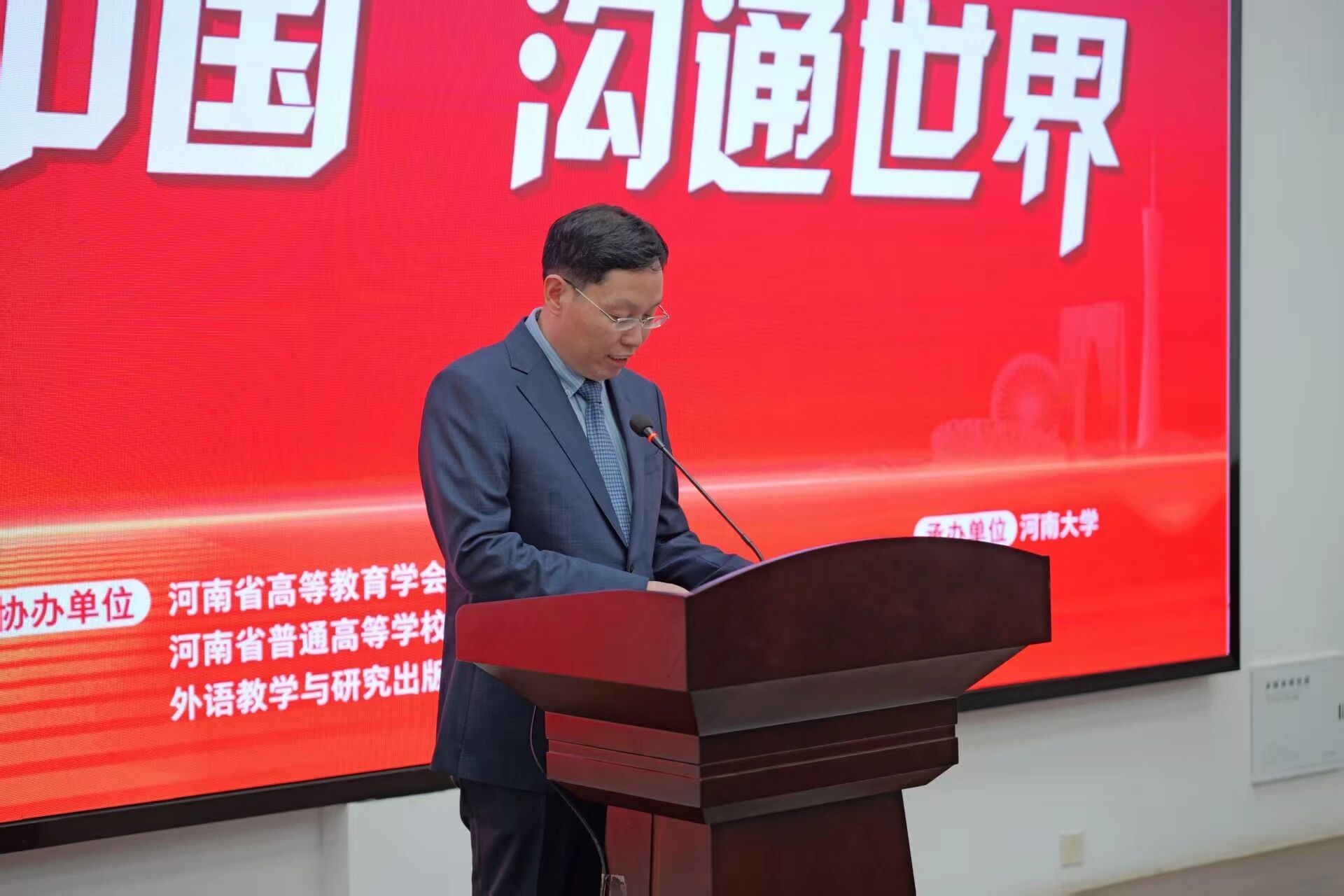 大赛开幕式由麻豆色情 党委书记、主任杨剑波主持。麻豆色情 副校长苗雨晨、河南省高等教育学会外语教学研究分会理事长、河南中医药大学党委副书记张加民、河南省普通高等学校外国语言文学类专业教学指导委员会主任委员、郑州大学教务部部长钱建成、麻豆色情 教务处副处长朱显峰、河南广播电视台大象国际传播中心副主任冉亚阁、外语教学与研究出版社高英分社副社长孔乃卓等嘉宾出席了开幕式。