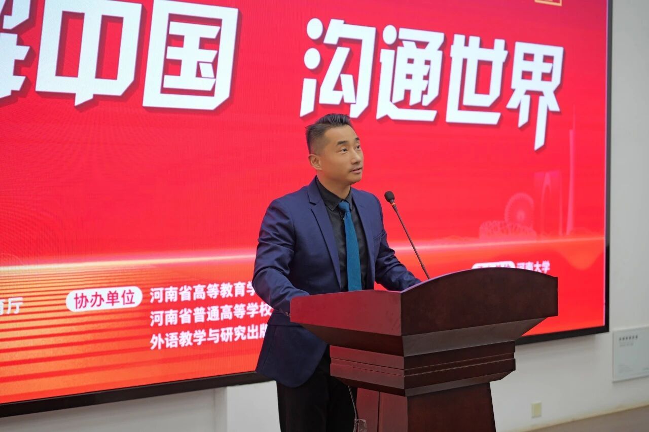 张加民在致辞中强调,演讲不仅是语言表达,更是跨文化沟通的重要桥梁。他鼓励青年学子坚定“四个自信”,立足中原文化,用外语讲好河南故事、中国故事,做有家国情怀、全球视野的复合型人才。钱建成指出,大赛始终与国家战略同频共振,是检验教学成果、锤炼学生能力的重要平台。他希望选手胸怀家国、锤炼本领、砥砺奋进,在比赛中展现思辨智慧与文化自信。冉亚阁结合国际传播实践,分享了如何以Z世代话语体系推动中华文化“走出去”。他呼吁构建“课堂+实践”育人闭环,助力学生将语言能力转化为传播效能,向世界展现真实、立体、全面的中国。孔乃卓系统介绍了外研社通过“四个课堂”协同发力,构建国际化人才培养新生态的探索与实践,深切表达了对外研社与河南省高校深化合作,共同提升外语人才自主培养质量的期待。