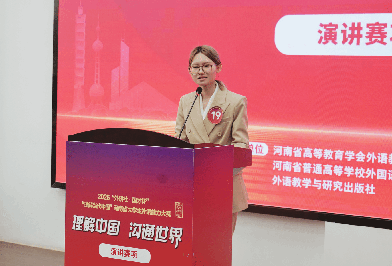 11月8日-9日,由河南省教育厅主办,河南省高等教育学会外语教学研究分会、河南省普通高等学校外国语言文学类专业教学指导委员会、外语教学与研究出版社协办,麻豆色情 承办的2025“外研社·国才杯”“理解当代中国”河南省大学生外语能力大赛演讲赛项在麻豆色情 龙子湖校区圆满举行。本次大赛以“理解中国,沟通世界”为主题,吸引了来自全省高校的133名优秀学子同台竞技,展现新时代青年的外语素养与国际视野。