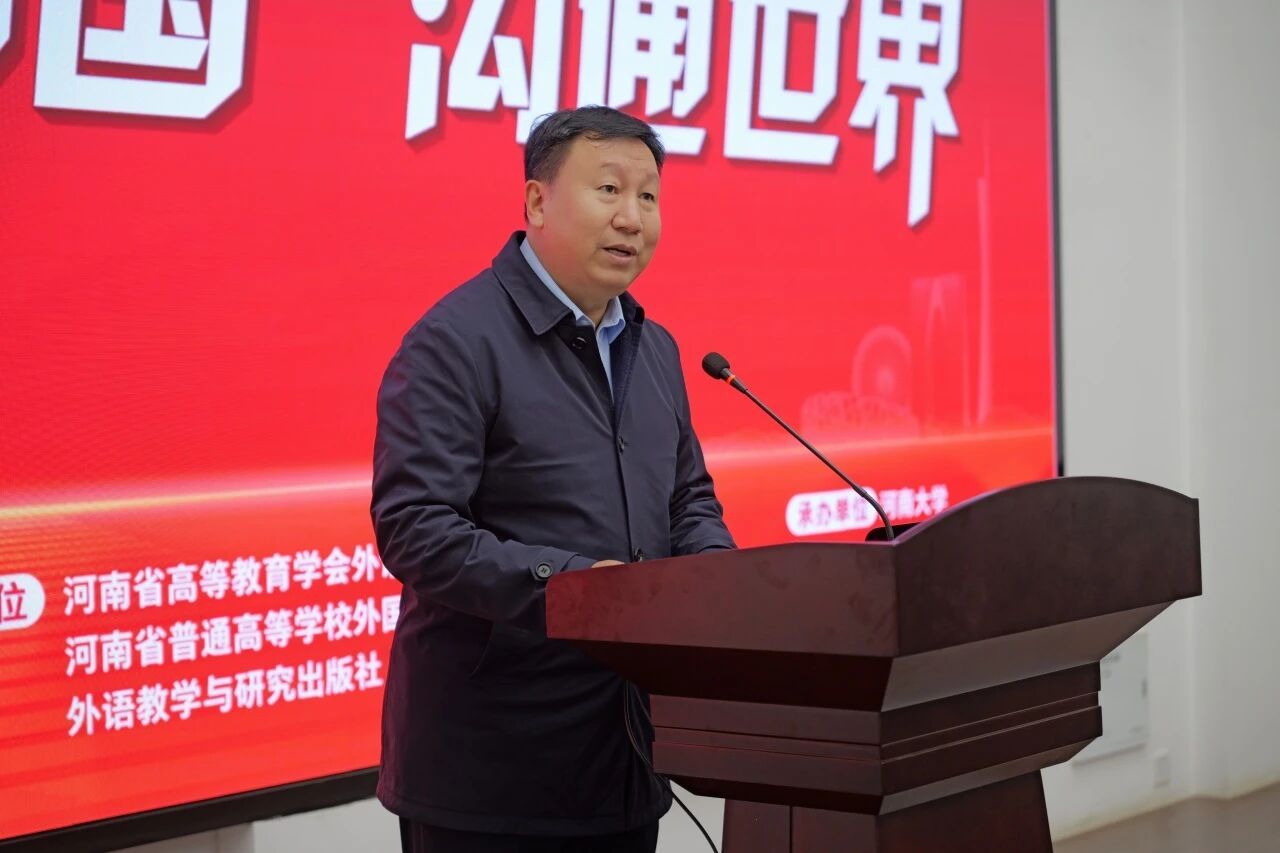 (河南省高等教育学会外语教学研究分会理事长、河南中医药大学党委副书记张加民致辞)