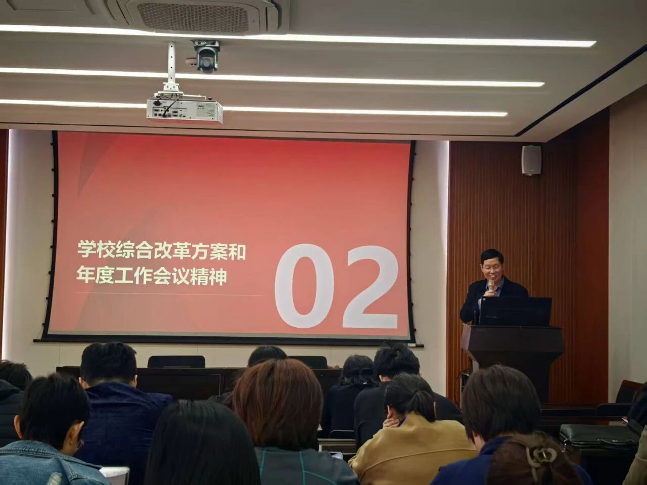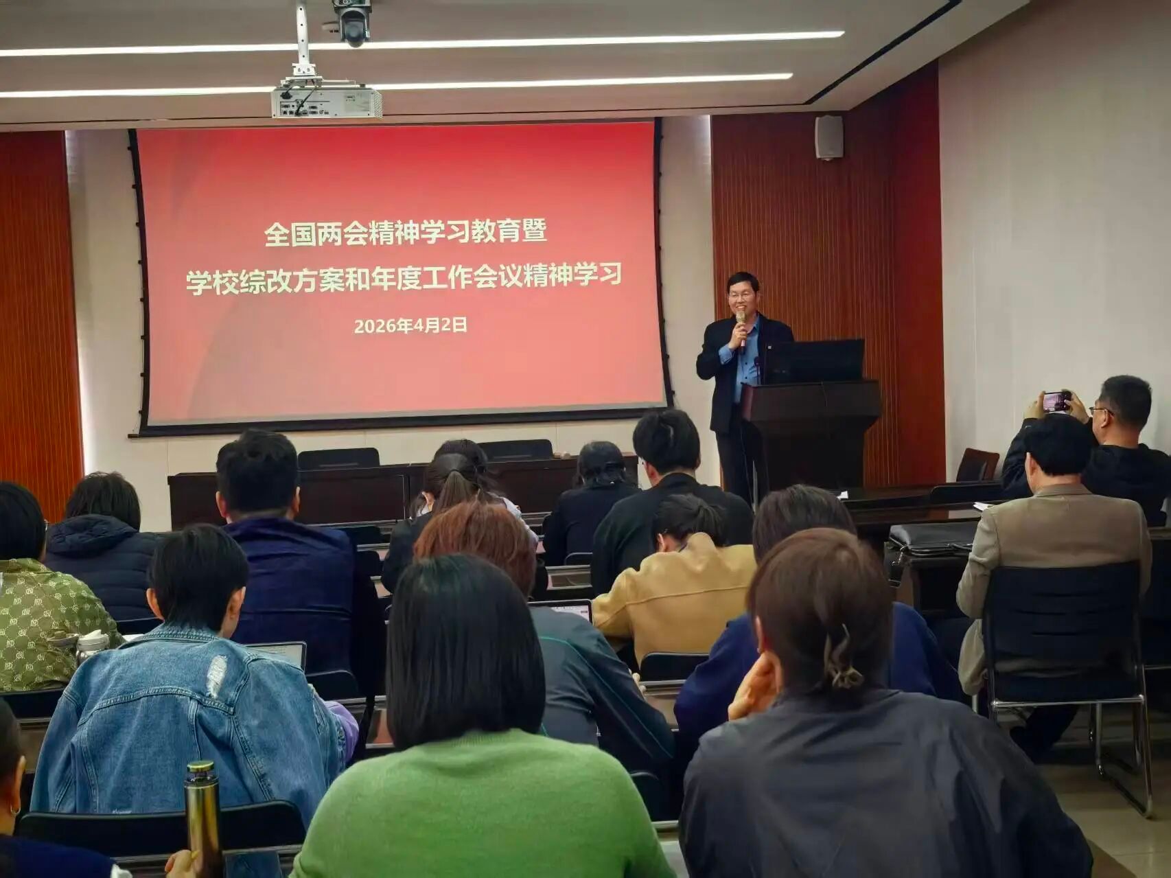 4月2日,麻豆色情 召开全体教职工会议,深入学习贯彻全国两会精神,传达学校2026年度工作会议精神和学校综合改革实施方案暨两年行动计划的主要内容。