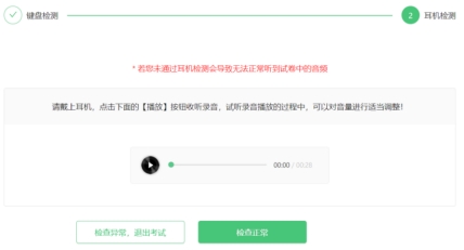 3. 线上初赛无听力题,可跳过耳机检测。